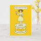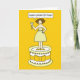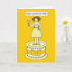 Eine Cartoon-Dame mit einem Cocktail und stehend auf einem Riesenkuchen. Die Dame ist Sprichwort "Happy Golden Birthday".