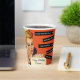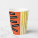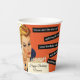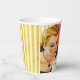 Alles Gute zum Geburtstag Party personalisierte Papiertassen, Vintag, Retro-Stil, Orange, Gold und Creme. Farbenfrohe Abbildung einer Vintagen Retro-Look Frau in einem blauen Kleid, das Kerzen auf einem Geburtstagskuchen ausbläst. Der Hintergrund ist orange, creme und gold. Die Tage, an denen man den ganzen Kuchen spitzt und ihn mit Freunden teilt, sind vorbei. Unsere Kollektion ist perfekt, um Ihrem Anlass einen Hauch von Lachen und Vintager Ästhetik hinzuzufügen. Sie umfasst humorvolle Geburtstagskarten und eine Reihe Vintager Party-Vorräte und Dekorationen. Erleben Sie die zeitlose Anziehungskraft vergangener Zeiten und bereichern Sie Ihre Geburtstagsfeiern mit einer Touch der Leichtigkeit. Personalisieren Sie den Namen auf dem Kuchen.