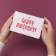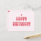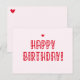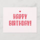 NewParkLane - Niedliche Postkarte, mit einem Happy Birthday Wunsch in einer süßen roten Typografie mit kleinen Herzen, vor einem rot rosa Hintergrund.