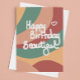 "Happy Birthday Beautiful" Schöne abstrakte Geburtstagskarte, geschaffen für alle schönen Soule da draußen! Mit einem beruhigenden Farbthema, weißer Typografie und einem kurvigen Thema ist diese Karte super kalt und wird ein Lächeln auf jedem schönen Gesicht.