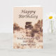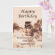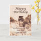 Eine Vintage Sepiaphotographie eines Dreißigerjahre Autos an der Spitze eines Hügels im bushland. "Alles Gute zum Geburtstag" wird an der Spitze geschrieben, und "Sie wären zwar über dem Hügel, aber es gibt einige Meilen in Ihnen, dennoch" ist an der Unterseite.