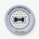 Alles- Gute zum Geburtstagtapezieren blaue Schnurrbart- und Bogen-Krawatte Teller