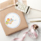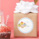 Runder Schalen- und Stockgeschenkumbau hat weißen Hintergrund zusammen mit mehrfarbigen kleinen Kuchen und alles Gute zum Geburtstag, das auf sie geschrieben wird.