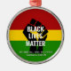 Stilvolle Christliche Black Lives Matter Ornament mit motivierend Botschaft Sprichwort BLACK LIVES MATTER - WIR SIND ALL ONE IN CHRIST, die auf dem Bibelvers der Galatianer 3:28-29 basiert: 'Es gibt weder Juden noch Andern, Sklave noch frei ... für euch alle in Christus Jesus.' . Schwarzer Power faust Set gegen rote, gelbe und grüne Tafeln, mit weißer Typografie.