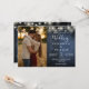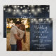 Diese rustikale blaue Stallenholz-Saitenlampe Hochzeitseinladung kann mit Ihren Informationen in der modernen Typografie und einem besonderen Foto personalisiert werden. Entwickelt von Thisisnotme©