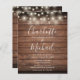Eine stilvolle rustikale Einladung zur Hochzeit mit hübschen Saitenlichtern, prächtigen Stilbezeichnungen und schicken Typografien auf rustikalem Holzhintergrund, personalisiert mit all Ihren besonderen Informationen zum Hochzeitstag auf der Rückseite, inklusive UAWG, Unterkunft und weiteren Details. Entwickelt von Thisisnotme©