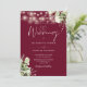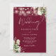 Diese elegante bordeauxfarbene Blumenstrauß-Lichter Hochzeitseinladung kann mit Ihren Informationen in schicker Typografie personalisiert werden, mit all Ihren speziellen Foto- und Hochzeitstagsinformationen auf der Rückseite, inklusive Ihrer UAWG, Unterkunft und weiteren Details. Entwickelt von Thisisnotme©