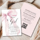Feiern Sie im Coquette-Stil mit dieser All-in-One-Babydusche-Einladung mit einem farbenfrohen rosa Bogen, sanften Pastelltönen und integriertem QR-Code für leichte UAWG. Eine süße und stilvolle Art zu verkünden: "Es ist ein Mädchen!"