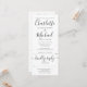 Eine vollendete Schwarz-Weiß-Hochzeitseinladung mit modernen Signatur-Skriptnamen und eleganter Typografie. Die Einladung enthält eine RSVP-Karte, die abgeschnitten werden kann, und Informationen zu den Gästen. Entwickelt von Thisisnotme©