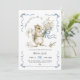 Liebenswertes Baby-Shower-Einladung im Wasserfarben-Stil mit einem süßen kleinen Eichhörnchen, das einen Blumenstrauß hält, der mit einem zarten blauen Band und einer Schleife gebunden ist. Charmantes Eichhörnchen-Design im Wasserfarben-Stil mit weichen blauen Akzenten, eleganten Band-Rahmen und dem verspielten Text "Ein kleines Eichhörnchen ist auf dem Weg" – perfekt für geschlechtsneutrale, Jungen- oder naturthematische Baby-Shower-Feiern.