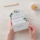 Dieses All in One Invitation, das die UAWG und Rücksendeadresse beinhaltet, enthält mehrere Eukalyptus-Stiele mit Blätter und Script Typografie. Die Einladung ist auch anpassbar. Fügen Sie einfach Ihre Hochzeitsangaben, wo es steht, Personalisieren Sie diese Vorlage. Ich habe die notwendige Vorlage markiert, um Ihnen bei dieser Anpassung zu helfen.