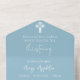 Ein Himmelblau in einer Taufeinladung mit einem weißen Blumenkreuz. Personalisieren Sie Ihre Taufe mit dem Namen, den Veranstaltungsorten, den Adressdaten und wechseln Sie, wenn gewünscht, zur Taufe. Teil der Floral Cross Christening Collection.