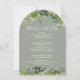 Diese elegante Eukalyptusgrüne botanische Salbei-grüne Hochzeitseinladung kann mit Ihren Informationen in schicker Typografie personalisiert werden, mit all Ihren speziellen Informationen zum Hochzeitstag auf der Rückseite, inklusive Ihrer UAWG, Unterkunft und weiteren Details. Entwickelt von Thisisnotme©