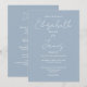 Diese dustig blaue, minimalistisch-elegante Schrift-Hochzeitseinladung kann mit all Ihren besonderen Hochzeitstag-Informationen auf der Rückseite personalisiert werden, inklusive Ihrer UAWG, Unterkunft und weiteren Details. Entwickelt von Thisisnotme©