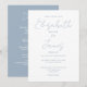 Diese dustig blaue, minimalistisch-elegante Schrift-Hochzeitseinladung kann mit all Ihren besonderen Hochzeitstag-Informationen auf der Rückseite personalisiert werden, inklusive Ihrer UAWG, Unterkunft und weiteren Details. Entwickelt von Thisisnotme©
