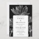 Diese elegante, moderne botanische Blumen-Hochzeitseinladung in Schwarz und Weiß kann personalisiert werden mit Ihren Informationen in schicker Typografie mit all Ihren speziellen Informationen zum Hochzeitstag auf der Rückseite, einschließlich Ihrer UAWG, Unterkunft und weitere Details. Entwickelt von Thisisnotme©