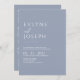 Dies ist eine perfekte Hochzeitseinladung, wenn Sie eine elegante und leicht bearbeitbare Einladung suchen. Eine elegante, einfache, minimalistisch staubige blaue Hochzeitseinladung. Wie Sie sehen, verfügt es über eine einfache schlichte blauen Boho ganze Design-Vorlage und weiß Braut und Bräutigam Namen und Infos. Mit individualisierbarem QR-Code auf der Rückseite, sodass Ihre Einladungen können online und sehen Sie alle Hochzeitsdetails auf Ihrer Hochzeitswebsite. Es ist erschwinglich und es ist auch digitale elektronische e-Einladung . Alle Informationen können durch Anklicken des Buttons Personalisieren angepasst werden. So packen Sie es und machen Sie es zu Ihrem, sodass Sie verlobt und aufgeregt einladen .