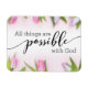 Typografie-Design mit Unterschrift in weißen Buchstaben: "Alles ist möglich mit Gott." Design ist zentriert in farbenfrohen Tulpenfotografie-Rahmen. Der Bibelvers stammt aus Matthew 19:26.