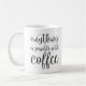 Diese stilvolle Tasse kennzeichnet einen schönen Skript-Schriftart und die Erinnerung, die alle mit Kaffee möglich ist.