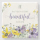Stein-Untersetzer mit schönen gelben und violetten Blumen und Schrift-Vers von Ecclesiastes 3:11: "Er hat alles schön gemacht in seiner Zeit." von Simply Scripture entwickelt; Elemente aus dem Hungry Jpeg.