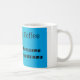 Eine Tasse mit dem Titel - "Alles Kaffee" - "Die Bohnen verteilen" und ein Foto einer Kaffee-Tasse unter Bohnen