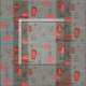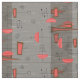 Moderne Rechtecke aus dem Mittelalter und Halbmonde Stoffe in einem Raumzeitalter Design. Hintergrund ist ein Lachsrosa, eine häufige Farbe Mitte des Jahrhunderts.