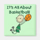 Ein männlicher Basketballspieler in einer grünen Basketballuniform mit einem Basketball und Text, der auf Basketballdesignern, T - Shirt, Hoodies, Tasse, Karten, Aufklebern, Porto, Magneten und anderen Basketballspielen und -geschenken "It's All About Basketball" steht.