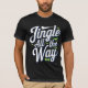 Das Bild zeigt den Satz "Jingle All the Way" in einem festlichen, stilisierten Schriftart. Die Buchstaben sind weiß mit grünen Akzenten und Set vor einem hellgrauen Hintergrund.
