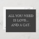 postcard Liebe - Alles, was Sie brauchen, ist Liebe... und eine CAT. Schwarz-Weiß-Postkartenspass von www.gotdonna.com