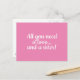 Du brauchst nur Liebe und eine Schwester. Rosa und weiße Postkarte mit handgeschriebener weißer Schriftzypografie.