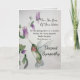 Äußern Sie Ihr tiefstes Beileid für den Schwesterverlust mit einer Kolibris-Aquarellkarte und einem Bibelziffer von Ecclesiastes 3:1 "Zu allem, was es eine Saison gibt, eine Zeit für jeden Zweck im Himmel." Elegant und ruhig wurde der Garten in Pastellfarben in Creme, Grün und Rosa gestaltet. Schicken Sie Ihre Segen und Gebete in einer Zeit des Verlustes mit einem schönen kleinen Vogel und Blume.
