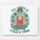 Die Phrase "Frauen meditieren mit Garnen, alles was ich brauche ist Yoga und Garn" legt nahe, dass die Frau sowohl Yoga als auch Garnkunst als wichtige Aspekte ihres Lebens findet. Durch die Kombination der beiden Aktivitäten schafft sie Entspannung, Achtsamkeit und Kreativität. Dieser Satz unterstreicht die Vorstellung, dass Freude und Zufriedenheit so einfach sein können, wie die Aktivitäten zu verfolgen, die uns das meiste Glück und Frieden bringen, sei es Yoga, Garnverarbeitung oder alles andere, was zu unseren Soulen spricht. Sowohl Yoga als auch Garn können Einzelaktivitäten sein, die Selbstbeobachtung und Selbstreflexion ermöglichen und sie zu einem natürlichen Paar für diejenigen machen, die einen friedlichen und erfüllenden Lebensstil anstreben.