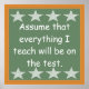 Hast du genug von deinen Schülern, die gefragt haben: "Wird das auf der Prüfung sein?" Stoppen Sie diese lästige Frage, indem Sie dieses Poster in Ihrem Klassenzimmer platzieren. Das Poster zeigt ein Bild von einer Tafel und Staaten in weißem Schriftart: "Nehmen Sie an, dass alles, was ich lehre, auf dem Test sein wird."