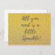Alles was Sie brauchen ist ein wenig Sparkle! Inspirationspostkarte mit Zitat: "Alles, was Sie brauchen, ist ein kleiner Spargel!" Schöne feminine Typografie mit goldfarbenem Glitzer. Ein wunderschönes Design für jeden, der ein bisschen Glamour Liebe hat und etwas Inspiration braucht! Vielen Dank für Ihren Besuch bei Eleanor May Designs