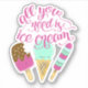 Alles was Sie brauchen ist Eis Niedlich und farbenfroh Vinyl Sticker.