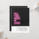 Diese Einladung wurde entworfen, um sich mit unserer Black and Pink Neon Collection abzustimmen. Sie enthält Neontext "Alles was Sie brauchen ist Liebe" auf dem Hintergrund der Wandtextur. Ideal für eine lustige, neonfarbene Hochzeit. Für eine erweiterte Anpassung dieses Designs, z.B. das Ändern des Layouts, des Schriftartes oder der Textgröße, klicken Sie bitte auf den obigen Button "KENNEN". Bitte kontaktieren Sie mich für weitere Fragen!