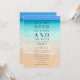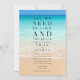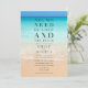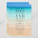 Schöne Beachszene Hochzeitseinladung mit dem Sprichwort "Alles was wir brauchen ist Liebe und der Strand". Maßgeschneidert mit Ihren Hochzeitsdetails.