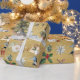 Eine Weihnachtsverpackung mit Aquarellfarben bemalten Elementen von Dingen, die mit Weihnachten und Rentieren zu tun haben.