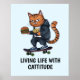 Dieses Poster einer Cartoon-Galleenkatze verströmt ein Gefühl von Unfug. Er balanciert geschickt auf einem Skateboard. In einer Pfote hält die Katze selbstbewusst einen köstlichen Burger und in der anderen Pfote klebt er einen kleinen Papierbeutel mit goldenen Pommes frites. Unterhalb des Designs lautet der fette Text "Leben mit Fülle", der das Thema ergänzt.