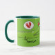 Alligator, der seine Liebe für Vögel mit Krokodilstränen ausdrückt. Benutzerdefinierter Text auf beiden Seiten.