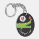 Alligator, der seine Liebe für Vögel mit Krokodilstränen ausdrückt. Benutzerdefinierte Hintergrundfarbe. Benutzerdefinierter Text auf beiden Seiten.