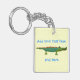 Quadratischer beidseitig anpassbarer Acrylfarbstoff-Schlüsselanhänger mit einem Bild eines grünen Alligators mit blauen Polka-Punkten und roten Polka-Punktwaagen auf hellgelb. Hellgelber Rücken. Siehe dazu passender großquadratischer Premiummetall-Schlüsselanhänger, Rundknopf, Acryl-Fotoskulptur-Button, Rundhalskette und Armbanduhr. Die gesamte Kidz Korner Schlüsselanhänger Kollektion finden Sie unter der Rubrik ACCESSORIES im Bereich KIDZ KORNER.