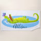 Strandtage = gut Tage. Behaupten Sie Ihre Stelle auf dem Sand mit einem kundenspezifischen Badetuch, das sicher ist, Ihnen zu helfen, ein Spritzen zu machen und heraus zu stehen.