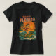 This kitschy throwback beach art is 'only in Florida' energy! A wild pin-up catches a wave as she rides an alligator like a surfboard. The surf beach at sunset scene has bold orange and red colors, complete with palm trees blowing in the tropical breeze. Add a little Florida chaos to your outfit with this fun t-shirt. | Pro-Tip: For vibrant colors we recommend vivid printing for most apparel. For white apparel select classic printing.