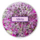 Nun, da der Sommer hier ist, ist es wunderbar, die Gärten voller bunter Blume noch einmal zu sehen. In diesem wunderschönen Blumendesign ist ein glorreiches lila Foto in voller Blüte umgeben von lebhaften, schockierenden rosa Gänseblüten.