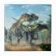 Drei allosauruses treten oben Staub, während sie entlang einer felsigen Bahn jagen, die durch den Durchgang der großen Dinosaurier hergestellt wird. Tiefgrüne Pflanzen zeichnen die Seiten der Spur" "während ein Nadelbaumwald den Hintergrund beherrscht. Obenliegender Wolkenantrieb durch die blauen prähistorischen Himmel. Der Allosaurus war ein Theropoddinosaurier vom Jurrassic Zeitraum. Einige Paläontologen theoretisieren, dass Allosaurs Satzjäger" "so ich waren, zwar, das es der Spaß sein könnte, zum eines Trios der Geschöpfe auf der Jagd für diesen spätesten Zusatz zu meiner paleoart Reihe darzustellen.