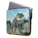 Drei allosauruses treten oben Staub, während sie entlang einer felsigen Bahn jagen, die durch den Durchgang der großen Dinosaurier hergestellt wird. Tiefgrüne Pflanzen zeichnen die Seiten der Spur" "während ein Nadelbaumwald den Hintergrund beherrscht. Obenliegender Wolkenantrieb durch die blauen prähistorischen Himmel. Der Allosaurus war ein Theropoddinosaurier vom Jurrassic Zeitraum. Einige Paläontologen theoretisieren, dass Allosaurs Satzjäger" "so ich waren, zwar, das es der Spaß sein könnte, zum eines Trios der Geschöpfe auf der Jagd für diesen spätesten Zusatz zu meiner paleoart Reihe darzustellen.