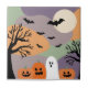 Noite de Halloween assombrada com abóboras, fantasmas e morcegos.