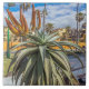 Ein wunderschönes Foto einer Aloe Vera Pflanze und Blume auf einer Keramik.