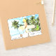 Aloha! Träumen Sie Landschaft mit einem Mädchen, das uns zum Surfen einlädt und Spaß, Sport, in voller Freiheit. Zeichn erstellt mit der Computergrafik 3d 2d.